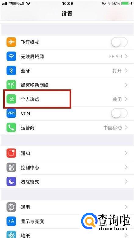 如下图,点击个人热点。