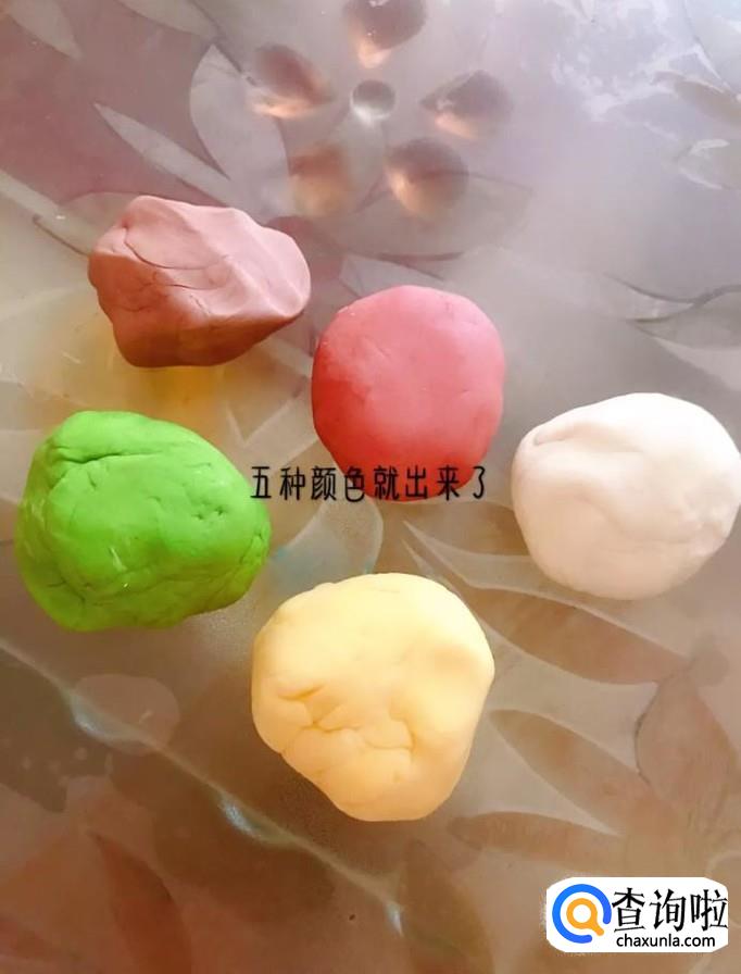 通过以上操作,五种颜色的面团就做出来了。