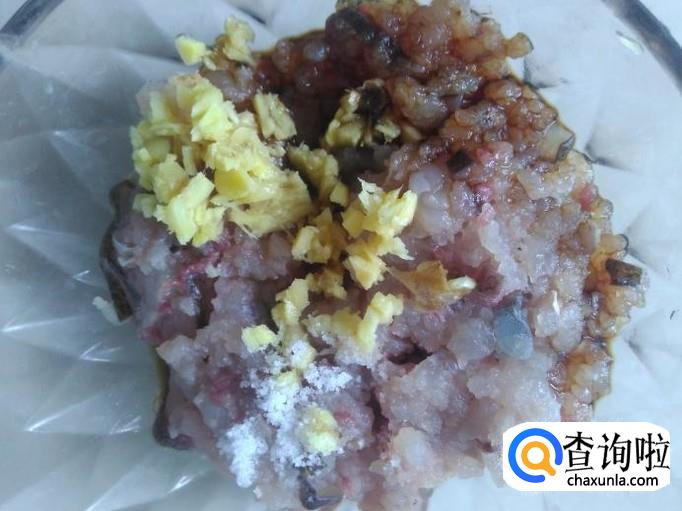 加适量的盐、姜蓉、生抽、料酒腌制一下。