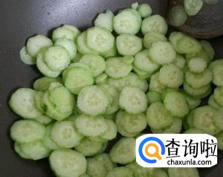 将老黄瓜片放入锅中,用铲子翻炒。