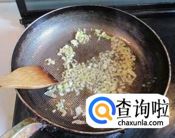 锅中放入食用油,油热后,将葱末放入锅中炝出香味。