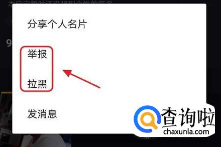 然后会弹出一个浮窗,我们选择其中的“举报”或者“拉黑”即可,拉黑以后他就无法看到我们的直播以及动态了,如下图...