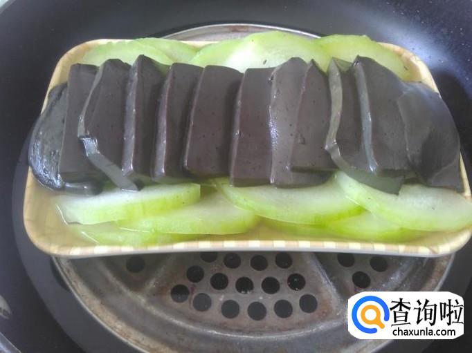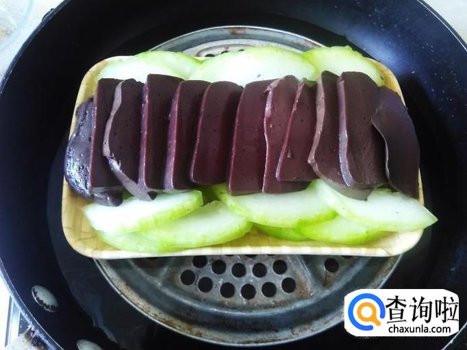 牛血也切成厚片,铺在冬瓜面上。