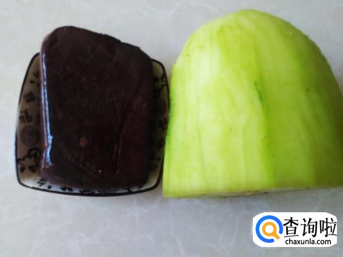 牛血是买熟的,冬瓜去皮去籽清洗干净准备好。