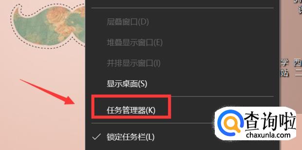 右键任务栏空白处,如图所示,点击“启动任务管理器”。