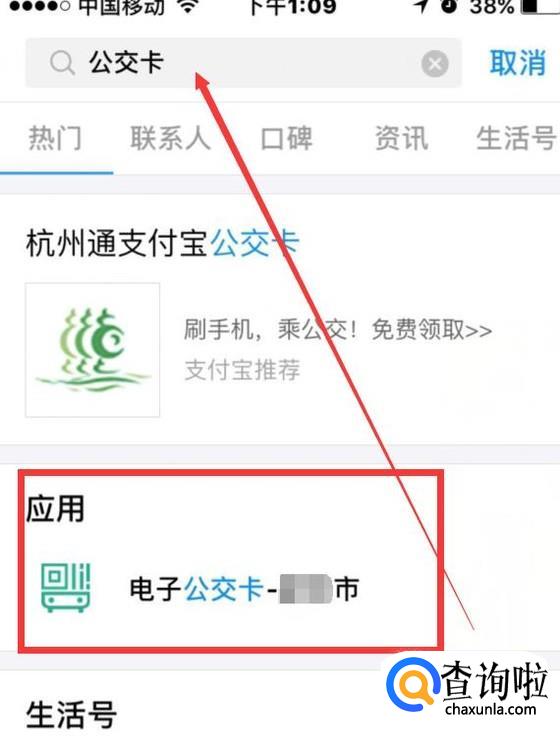 下载后打开支付宝手机APP,在首页搜索栏中搜索“公交卡”,可以弹出一个应用,这个就是本地的电子公交卡。