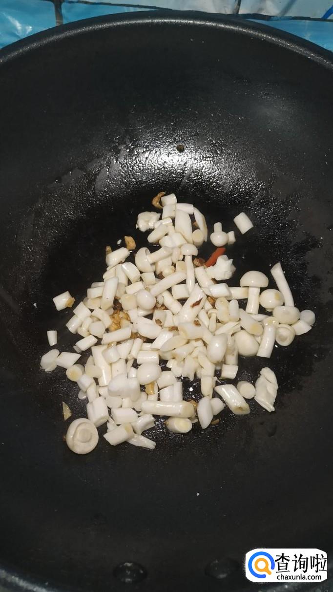 准备适量姜和蒜,洗净后切碎备用,炒锅中放入适量油,油热后将姜末和蒜末放入锅中炒香,然后将海鲜菇放入锅中,翻炒均匀。