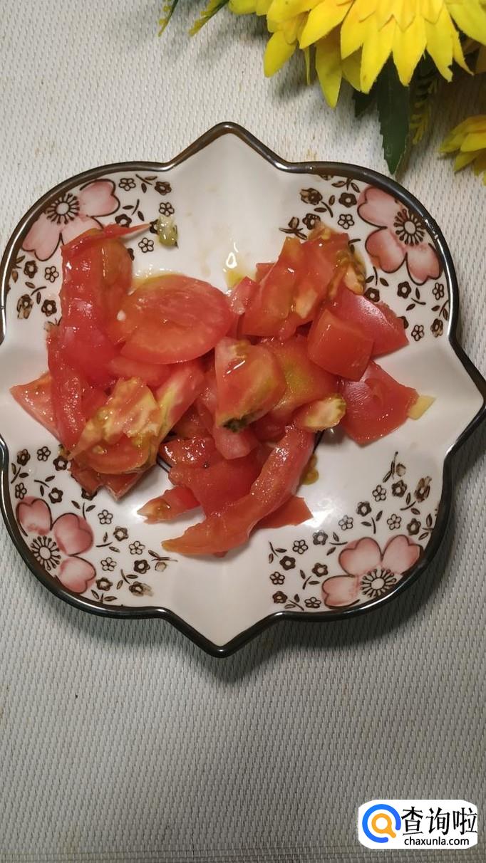 准备一个西红柿,洗净后切碎,这样更容易炒出番茄汁,不喜欢西红柿皮的,也可以用水焯一下,去掉外皮。