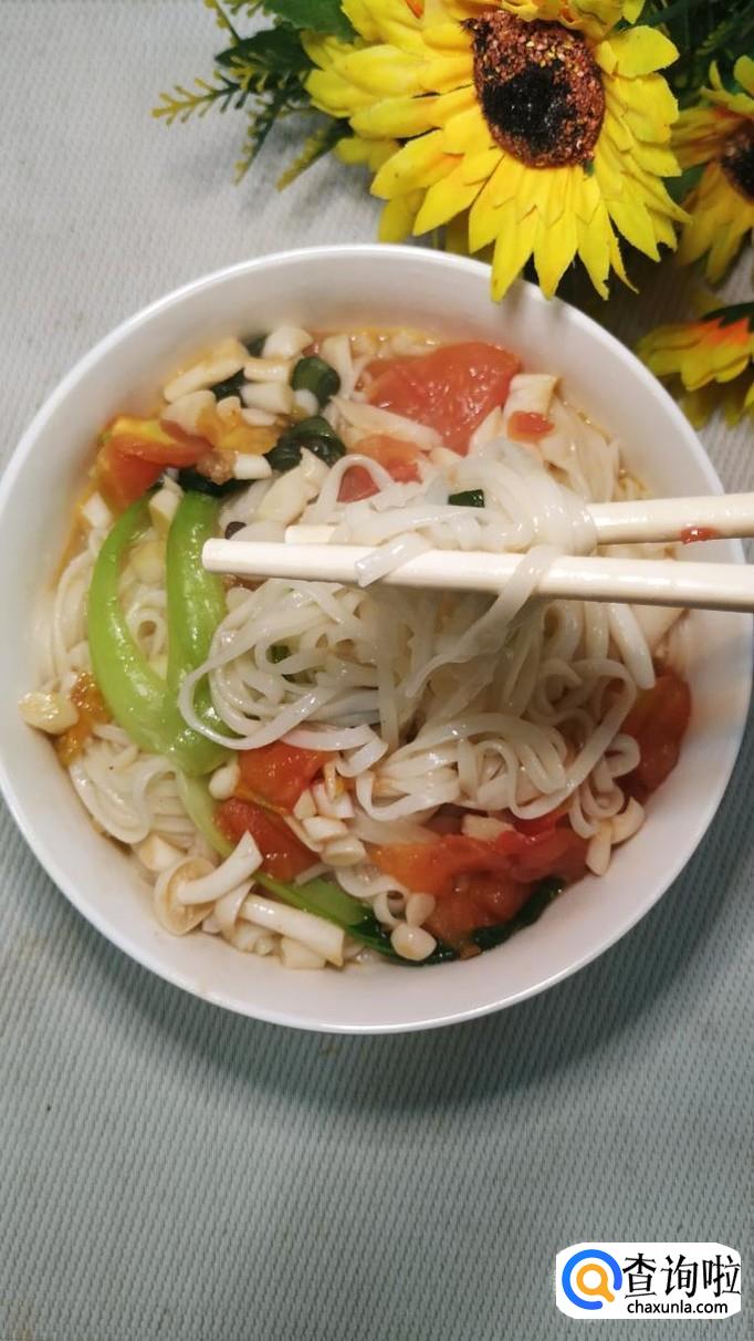 海鲜菇适量,西红柿适量,番茄酱适量,青菜适量,姜适量,蒜适量,面条适量,盐适量,鸡精适量,五香粉适量,生抽适量,陈醋适量。