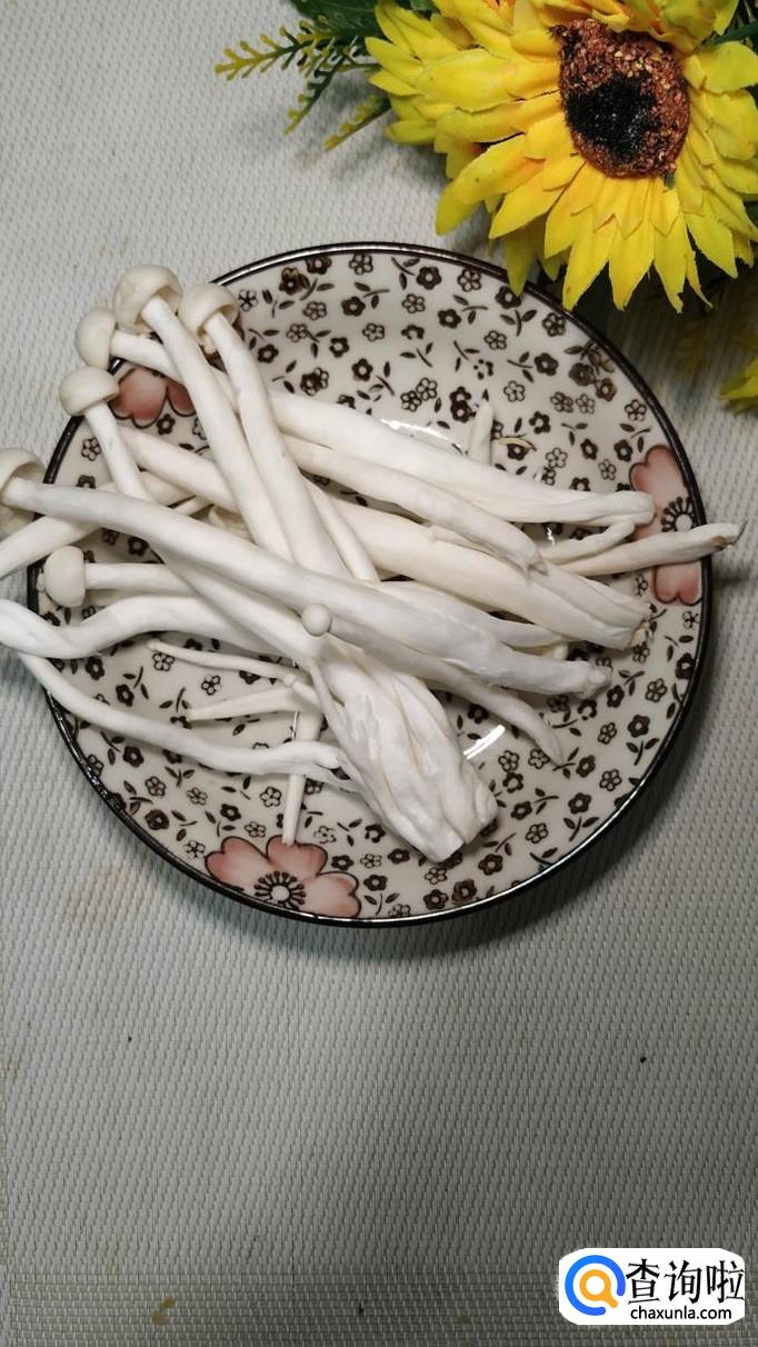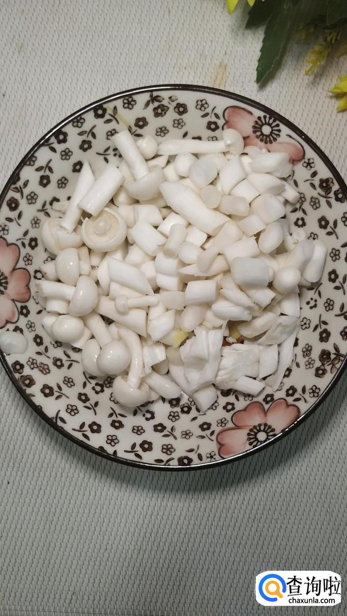 准备适量海鲜菇,洗净后切成小段,切小一点儿将,一方面容易炒熟,另外一方面味道会更加鲜美。