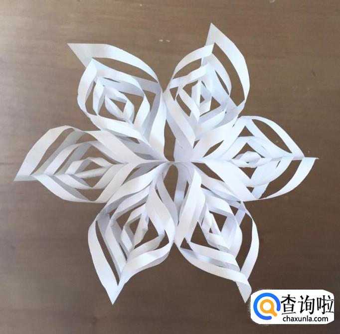最后,把六片雪花瓣粘成一朵雪花,这样一朵3立体雪花就完成啦!