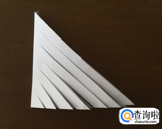 如图,用剪刀把三角形剪成几条,注意别剪到顶部,预留一点空间,每条差不多大小。