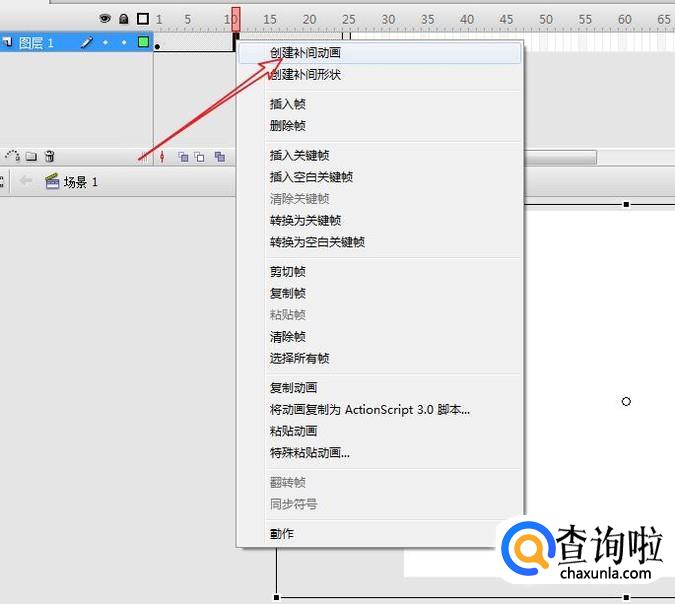 在时间轴任意一帧,右击鼠标左键选择“创建补间动画”。