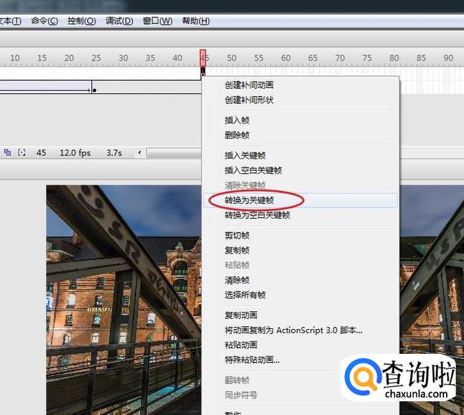 选择第四十五帧,右击选择“转换关键帧”。