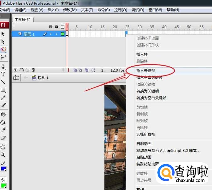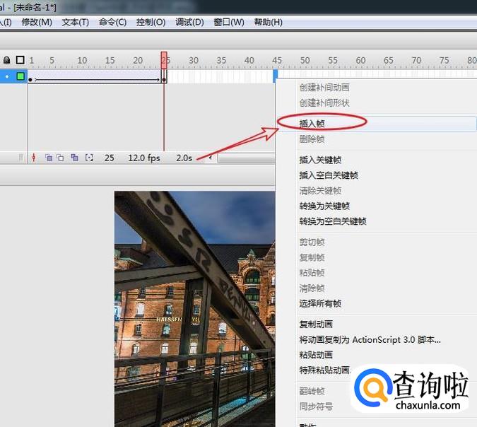在时间轴的第二十五帧,右击鼠标选择“插入关键帧”。