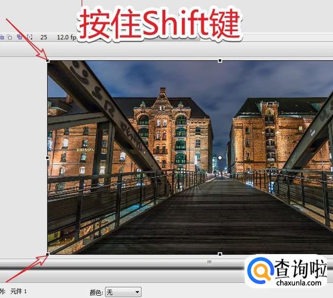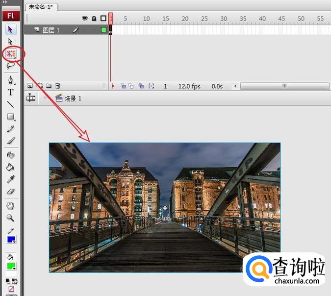 使用“自由变换”工具,对舞台上的图片进行调整。