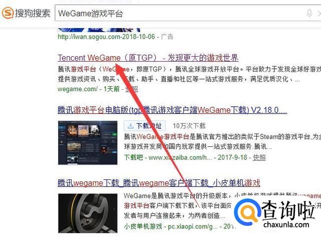 进入之后,搜索“WeGame游戏平台”,点击并进入,如图所示。