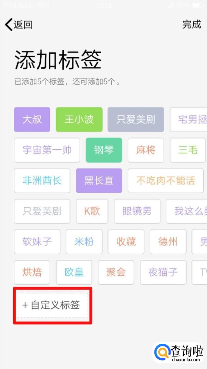 在所有标签的下方,有一个“自定义标签”,点击之后就可以自己创建标签了,输入标签名称,然后点击右上角的“添加”,就是成功添加了哦!