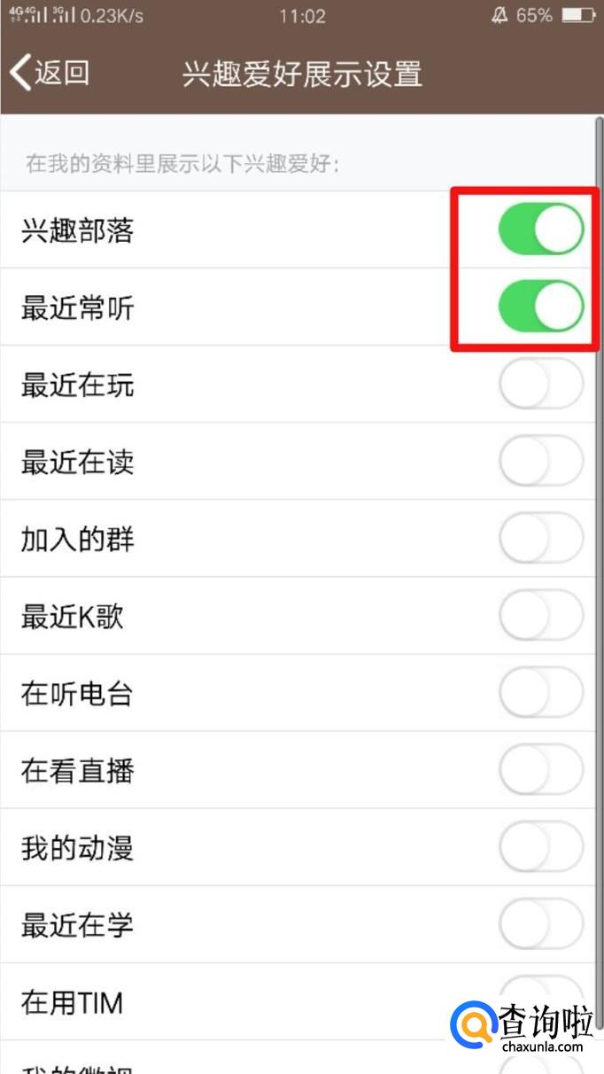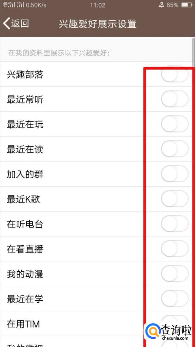 退出到个人主页界面,然后往下滑就可以看到我们要展示的兴趣了哟!(小编是随机点了几个要展示的兴趣,各位QQ用户们根据自己的想法来开启就OK啦!)