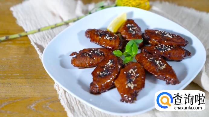 收汁之后将鸡翅夹出装盘,再撒上芝麻,放上装饰,这道柠香红酒炖鸡翅就完成了。