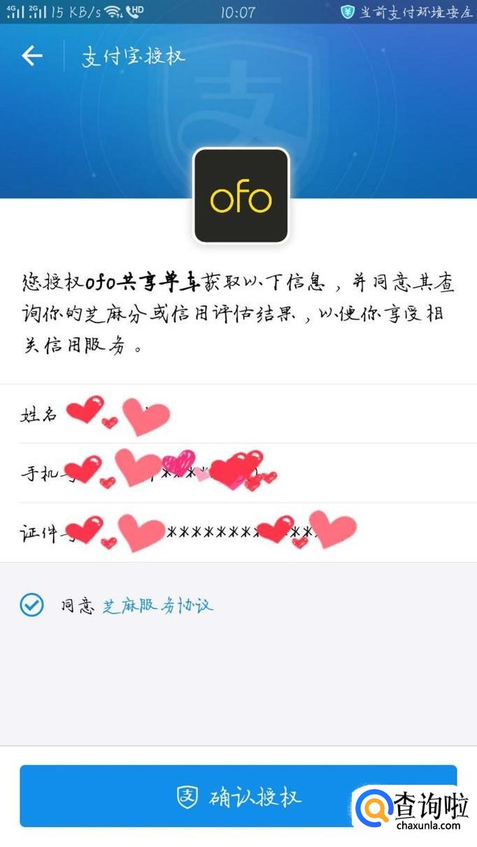 勾选《芝麻服务协议》后,“确认授权”