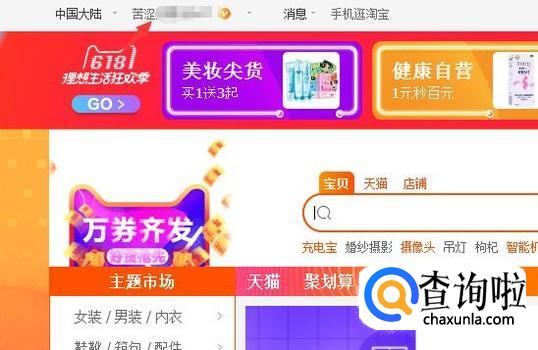 登录成功后的页面是淘宝网的,我们要点击上方的账号名进入到个人中心。