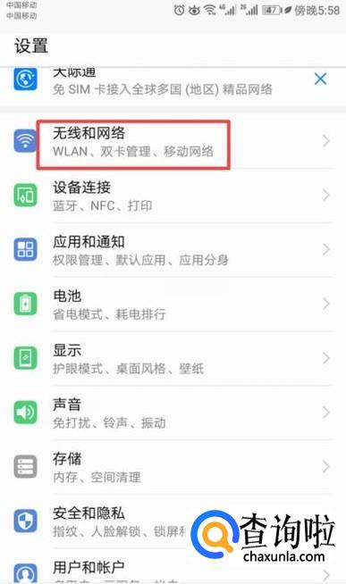 之后我们点击无线和网络;