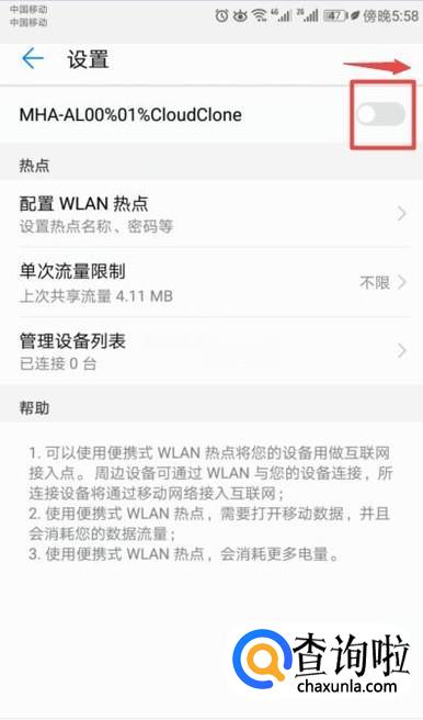 然后我们将热点的开关向右滑动打开;