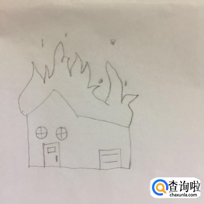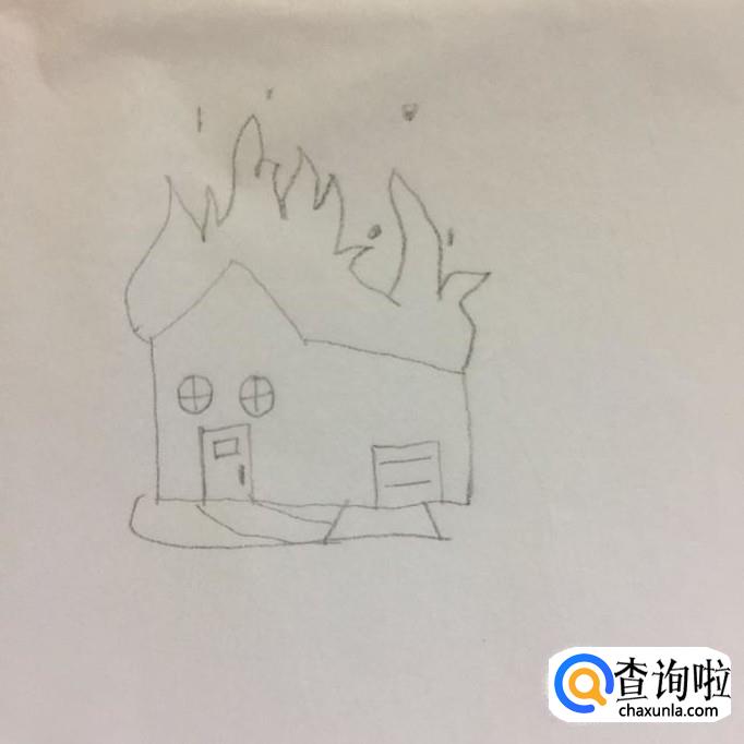 接着在房子上方画出一些不规则的曲线作为火苗,如下图所示。