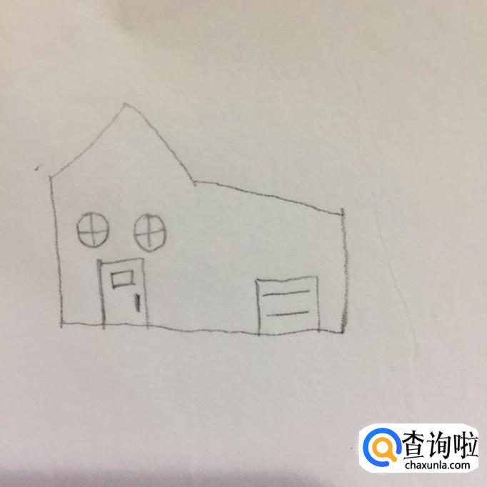 然后在房子轮廓的右下方画出一个车库的门,如下图所示。
