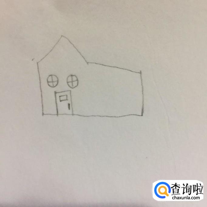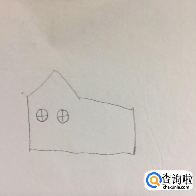 然后画出房子的窗户,如下图所示。画这部分的时候我们可以画出两个简单的圆,之后在这两个圆当中画上加号就可以了。