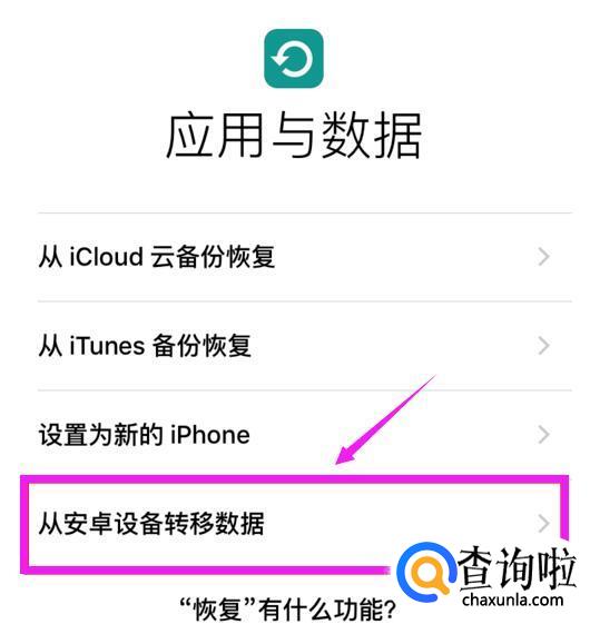 在iPhone上激活“应用与数据”的时候,选择“从安卓设备转移数据”。