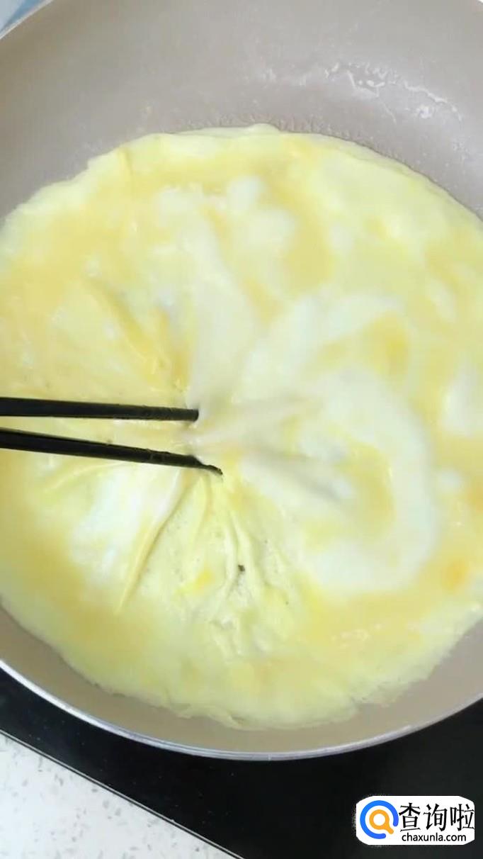 然后锅中放入适量的食用油,待油冒烟,倒入鸡蛋煎三分钟,起过备用。