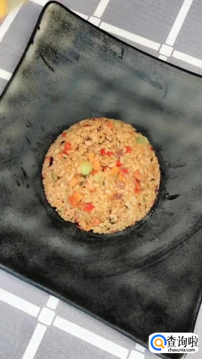 接着把炒好的剩饭倒入盘中,如下图所示。