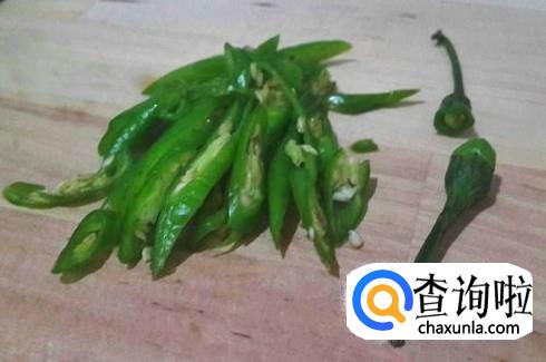 取适量的青椒,洗净后然后切成斜刀状备用