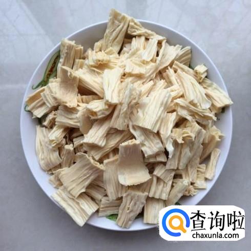 首先我们取适量的腐竹,放入温水中进行浸泡,泡软后然后取出切成小段备用