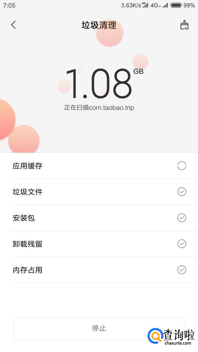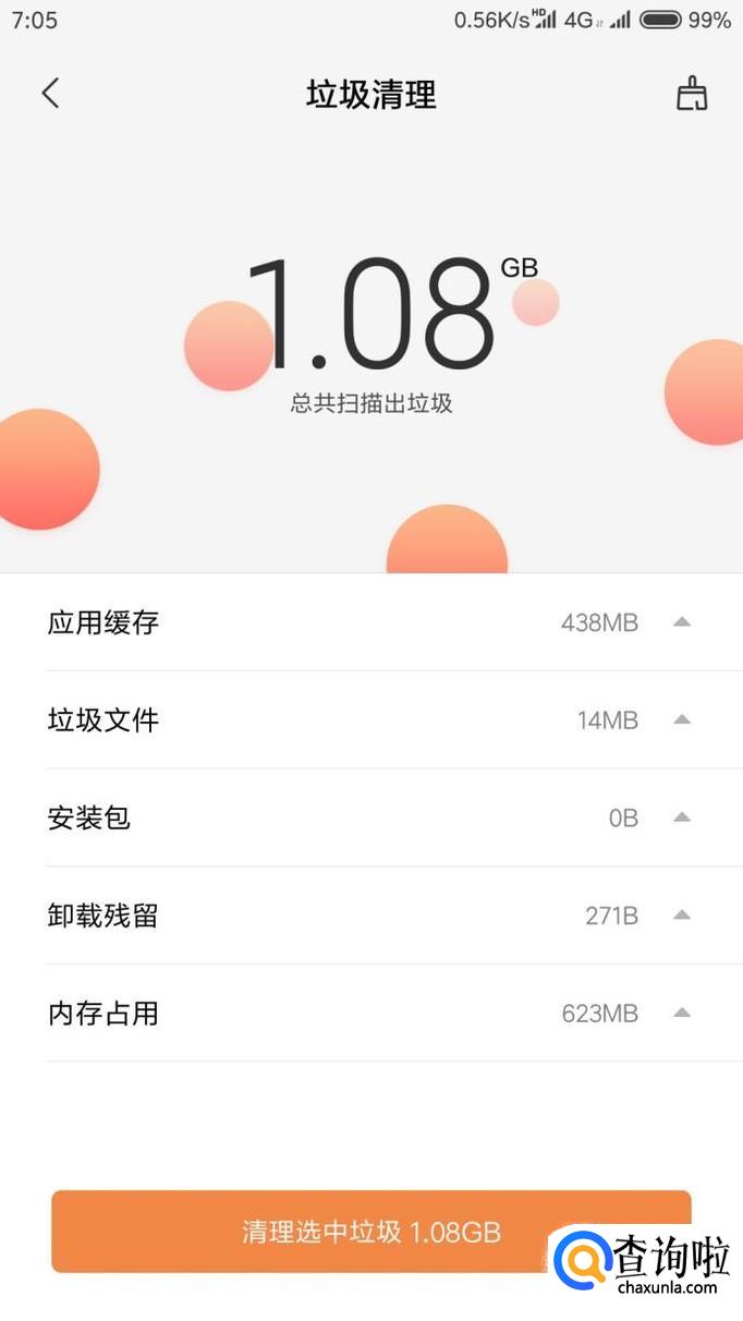 然后系统就会开始扫描手机里面的垃圾文件,点击清理即可。