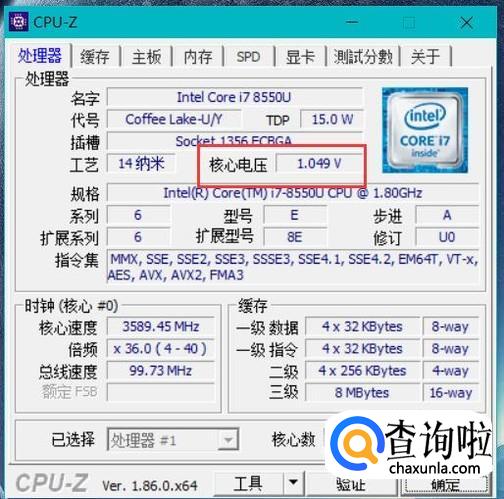 如图,在CPU-Z主界面中,我们就能找到核心电压数值,也就是常说的CPU体质。