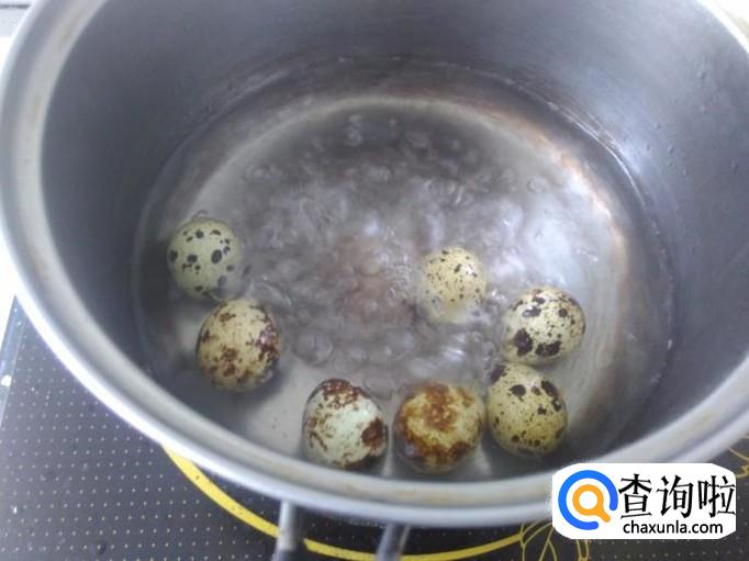锅里装适量的水,把鹌鹑蛋放进去用小火煮沸后再煮3分钟左右。