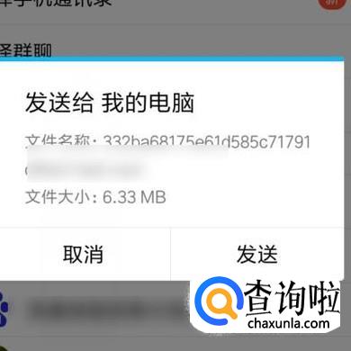 接着,弹出另一个界面,在此界面中,手指轻点一下"我的电脑“;弹出的对话框中,点:发送