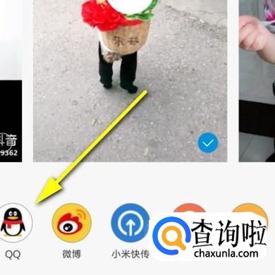 这时,跳到另一个界面,在屏幕的下方又弹出一列菜单,再点:QQ;表示选择QQ发送此视频。