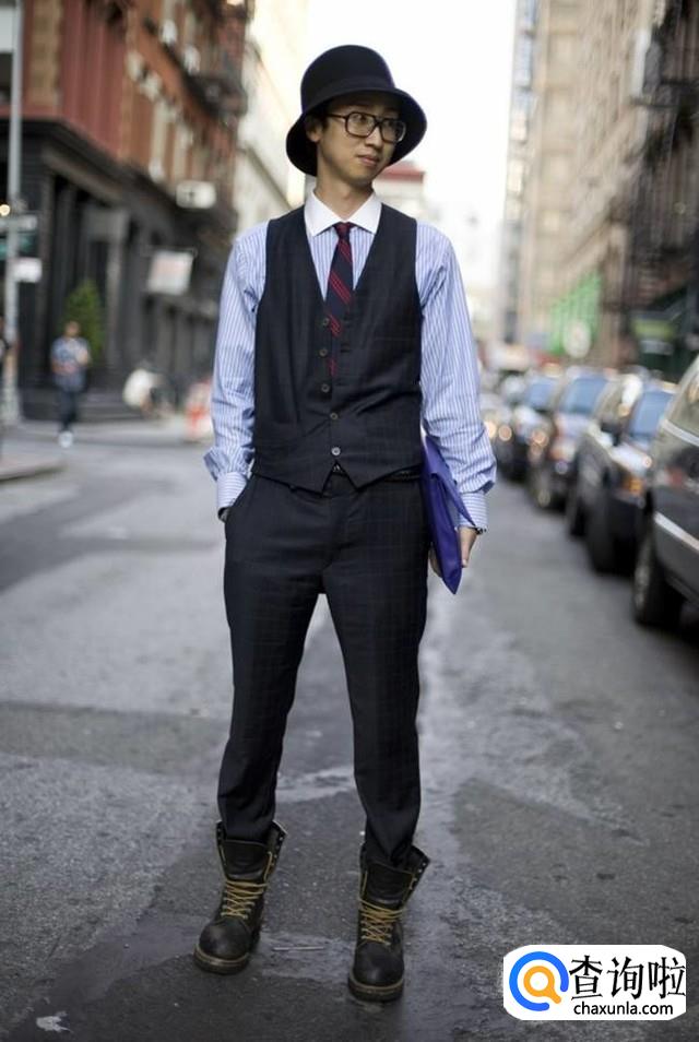 用西裤搭配马丁靴,感觉有点不伦不类,但其实上身效果很好,显现出一种绅士范,优雅且不羁。