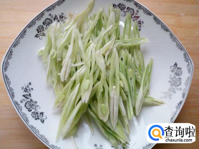 芸豆收拾清洗干净,控干水分,切成丝。