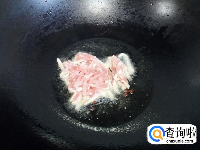 锅里放入油加热,油热后放入花椒爆锅,放入肉丝翻炒。