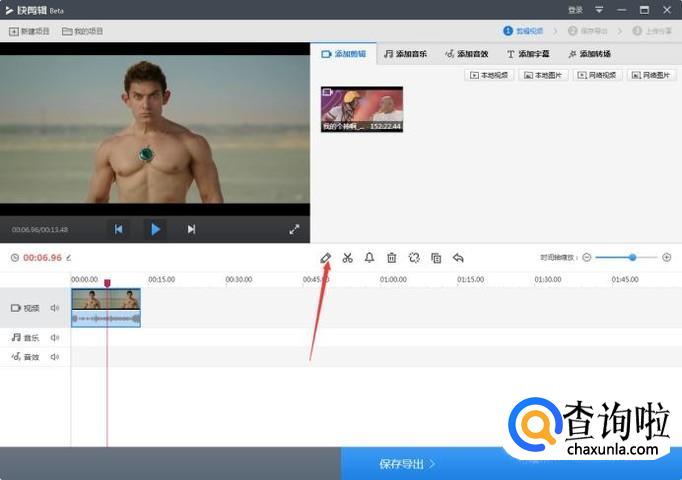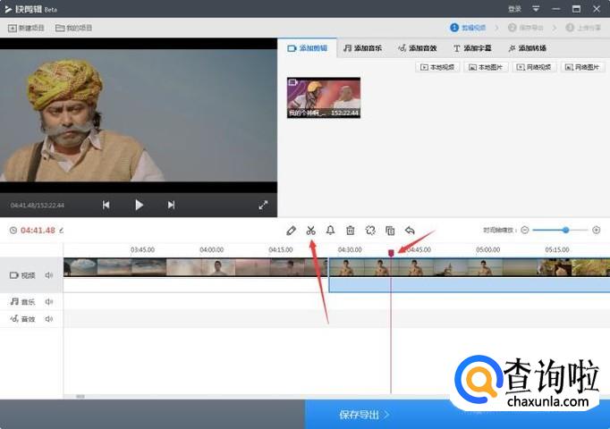 点击添加音乐/音效,可分别给你剪辑的电影片段添加上自己需要的背景音乐和声音特效。