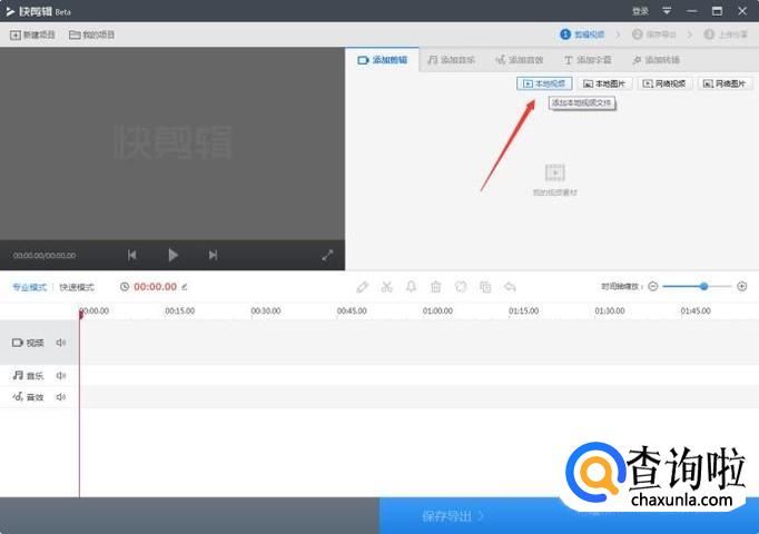 进入后,点击右上角的本地视频,从电脑中找到你要剪辑的电影(下载好的),把电影导入到软件里面。