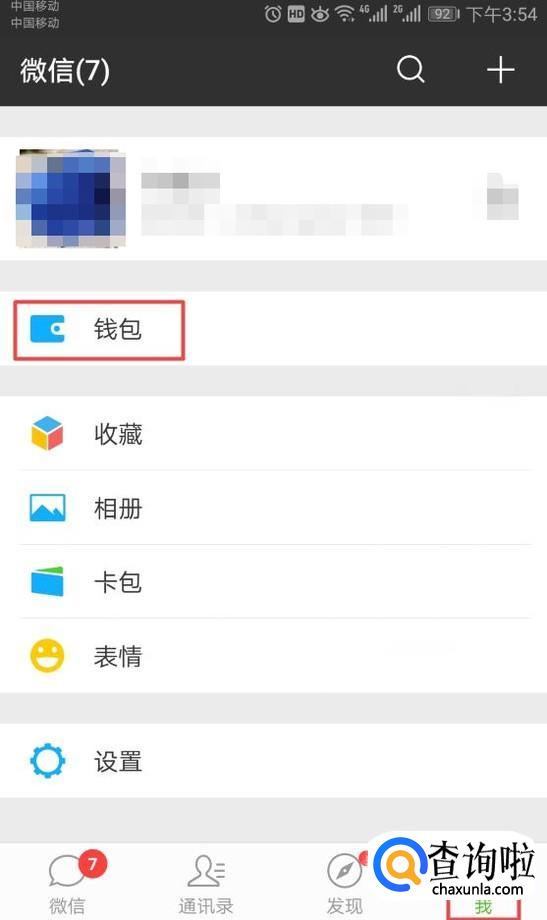 首先,我们打开我们手机上的微信,然后我们点击我,之后我们点击钱包;
