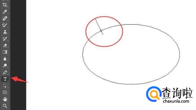 用椭圆工具在画布上画一个椭圆。然后使用左侧“T”形的文字工具,在椭圆弧形上点一下。