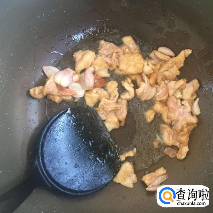 接着把瘦肉倒入锅中翻炒五分钟,起锅备用。