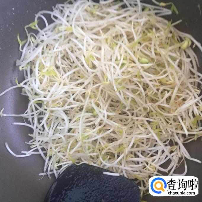 接着把豆芽倒入锅中翻炒三分钟,如下图所示。